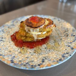 Timbal de berenjenas con queso de cabra payoyo
